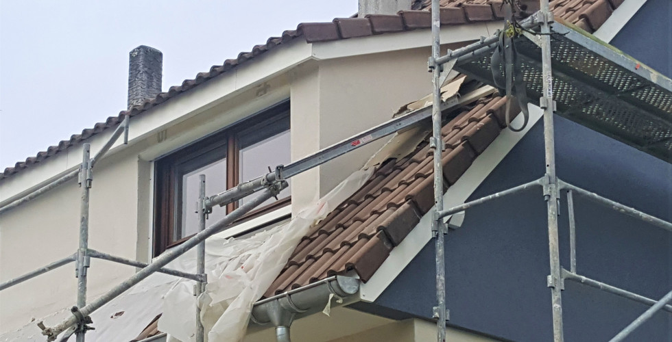 Maison individuelle, réfection des bandeaux de rives + habillage en tôle laquée blanche + réfection des chéneaux.